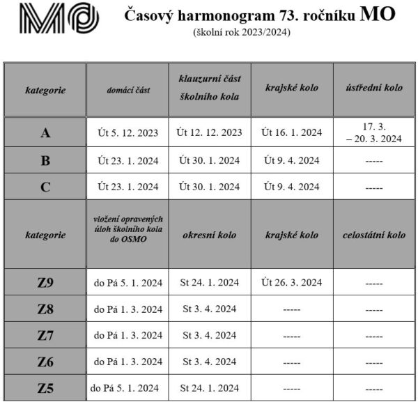 Všechna kola v tomto školním roce skončila. Poslední aktualizace 19. 5. 2024